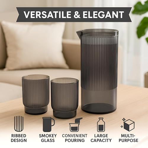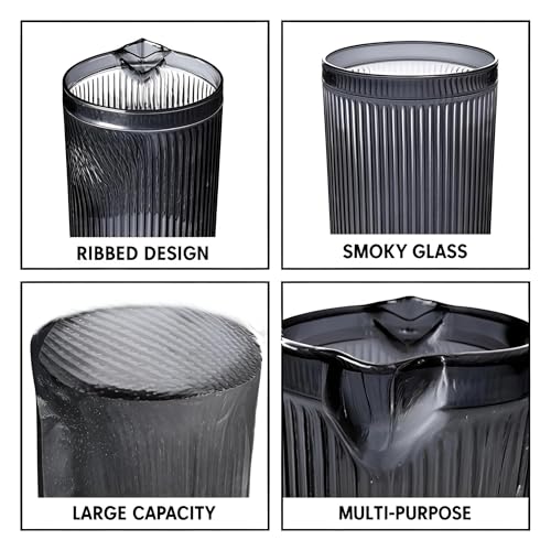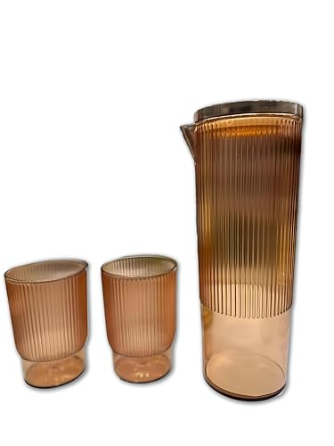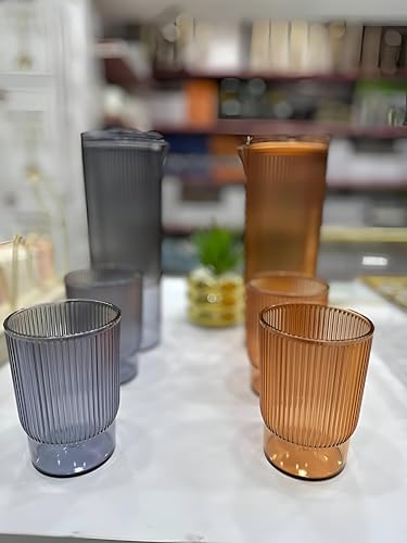 - تمنح سعة الإبريق الكبيرة سهولة في تقديم الماء والعصير والمشروبات الباردة المتنوعة، مما يضمن توفير الانتعاش الكافي للضيوف وأفراد العائلة. تتناسق الأكواب في التصميم مع الإبريق، مما يخلق مظهرًا متكاملًا يضيف لمسة من الأناقة والجاذبية إلى تجربة التقديم أو تناول الطعام.