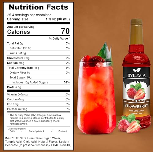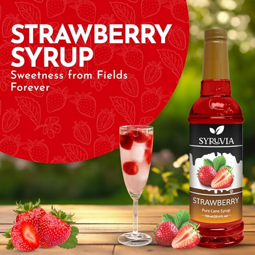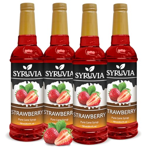 SYRUVIA - شربات بنكهة الفراولة، مذاق الفراولة الحلو في كل زجاجة، مشروب حلال وخالي من الجلوتين لإضافة لمسة مميزة إلى وصفاتك أثناء الطهي وصنع المشروبات من سيروفيا، 750 لتر، مجموعة من 4 قطع