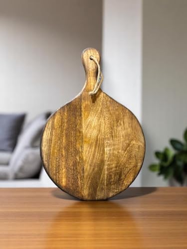 SYSI HOME - لوح تقطيع خشبي للمطبخ من سيسي هوم، هدية للام والزوجة | لوح تقطيع للمطبخ | لوح تقطيع دائري | لوح تقديم خشبي | طبق بيتزا