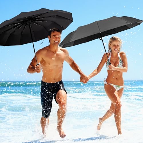 SZHLUX - مظلة سفر من اس زد هلوكس عدد 12 ضلع - مدمجة قابلة للطي - مظلة سوداء مقاومة للرياح - مظلات آلية للمطر والشمس وشنطة الظهر والسيارة والسفر والجولف - أسود