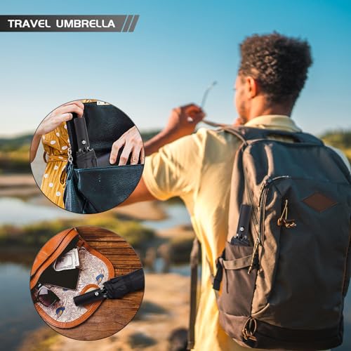 - مظلة سفر صغيرة محمولة: إنها مظلة ثلاثية قابلة للطي، أقل من 13 انش (33 سم) عند طيها. يسهل التصميم المدمج وضعها في غطاء المظلة المتين المرفق الخاص بنا ووضعها بسهولة في سيارتك أو حقيبة اليد أو حقيبة الظهر أو حقيبة السفر أو حقيبة الأمتعة وغيرها الكثير.