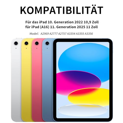 - [التوافق] جراب حماية لجهاز اي باد متوافق مع جهاز آبل اي باد 10. الجيل العاشر مقاس 10.9 بوصة إصدار 2022، موديلات اي باد (A2696/A2757/A2777). غير متوافقة مع موديلات ايباد الأخرى.