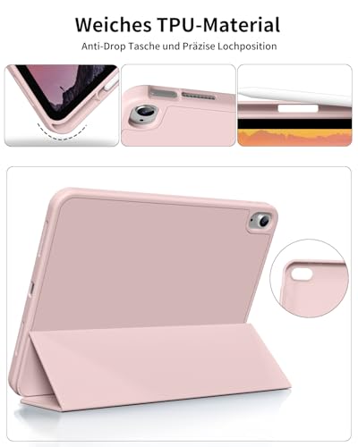 SZPSGC - جراب حماية من اس زد بي اس جي سي، لجهاز اي باد الجيل العاشر 10.9 بوصة 2022 مع حامل قلم، خاصية النوم/ الاستيقاظ التلقائي، مسند ذكي بجراب خلفي من بولي يوريثين مقاوم للحرارة ناعم لجهاز اي باد 10، وردي