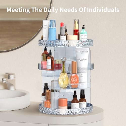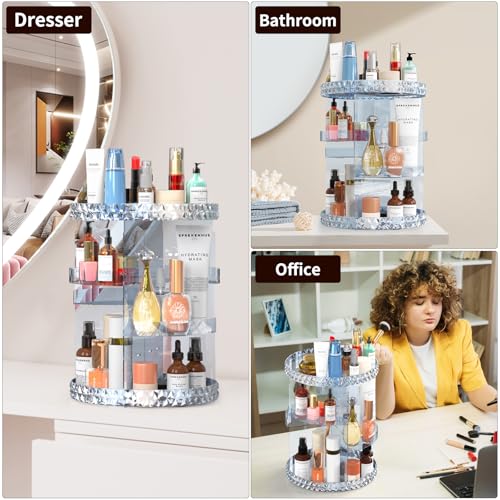 SZTWDZ - منظم مكياج دوار من اس زد تي دبليو دي زد، حامل مكياج اكريليك من 3 طبقات، منظم مستحضرات التجميل