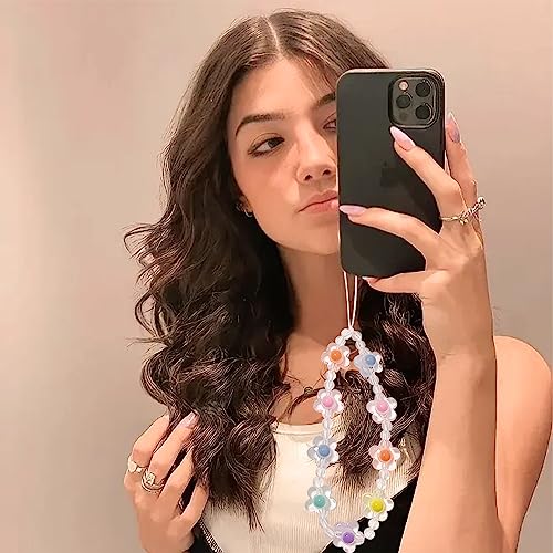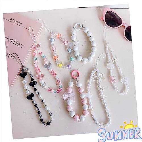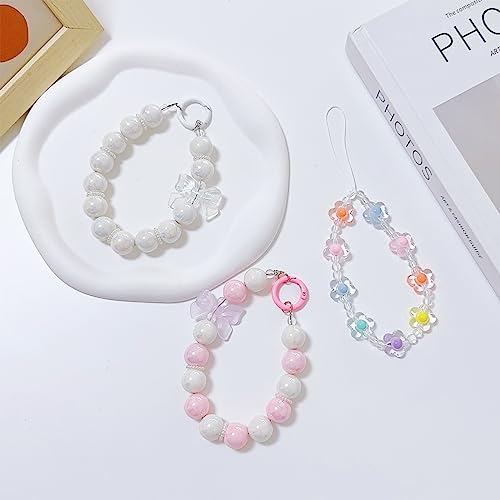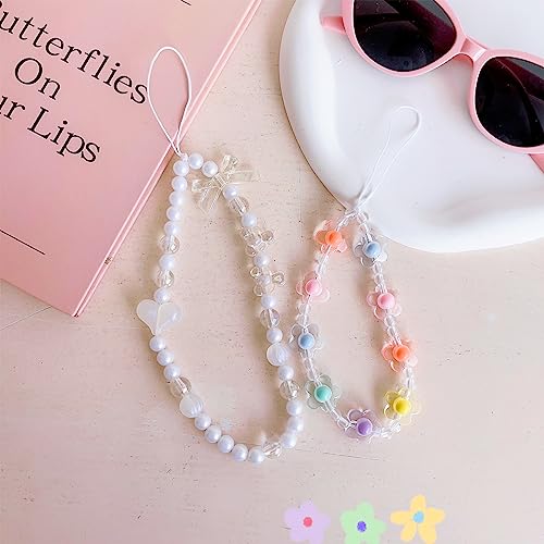 SZXYCZL - دلايات للموبايل من اس زد اكس واي سي زد ال مطرزة بالخرز بتصميم دب وفراشة وقلب لؤلؤ أبيض، مع حزام سلسلة مضاد للضياع للنساء والفتيات، 2 قطعة
