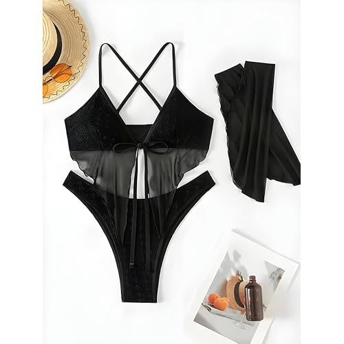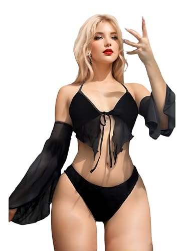TE BIANCO - طقم لانجري 4 قطع | ( توب قصير شفاف ، بانتي ، 2 كم منفصلين ) | الخامة دانتيل | موديل V601 من تي بيانكو