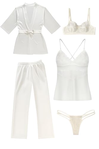 TE BIANCO - بيجامة 6 قطع | ( رووب ، بنطلون ، بيبي دوول ، تووب ، بانتي ، حزام ) | بتصميم إمبراطوري | الخامة ساتان | موديل R133 من تي بيانكو