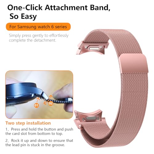 ALMNVO - سوار ميلانو بمشبك على شكل حرف T لساعة سامسونج جالاكسي 6/5/4 مقاس 40 ملم و44 ملم و6 كلاسيك 47 ملم و43 ملم للرجال والنساء، مرفق بنقرة واحدة، سوار مغناطيسي من الستانلس ستيل بدون فجوات لساعة جالكسي 5 برو