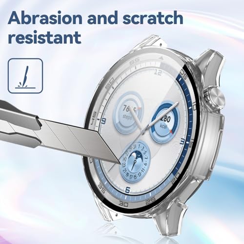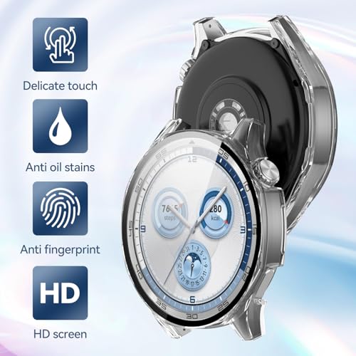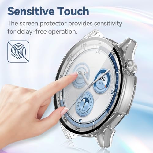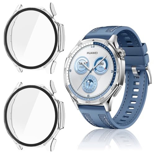 T Tersely - جراب وواقي شاشة لساعة هواوي GT5 مقاس 46 ملم، مضاد للخدش والصدمات من البولي كربونات، غطاء كامل من الزجاج المقوى متوافق مع ساعة هواوي GT5 من تي تيرسيلي، عبوة من 2 قطعة (شفاف)