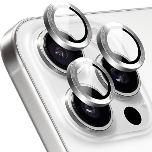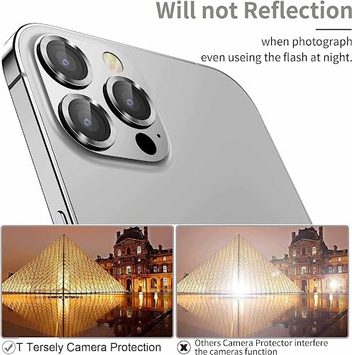 T Tersely - واقي عدسة الكاميرا لموبايل آيفون 16 برو وآيفون 16 برو ماكس 2024 من زجاج مقوى شفاف بدرجة صلابة 9H مع غطاء حماية للكاميرا من تي تيرسيلي، لون فضي، عبوة 4 قطع