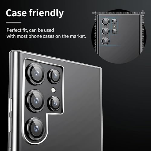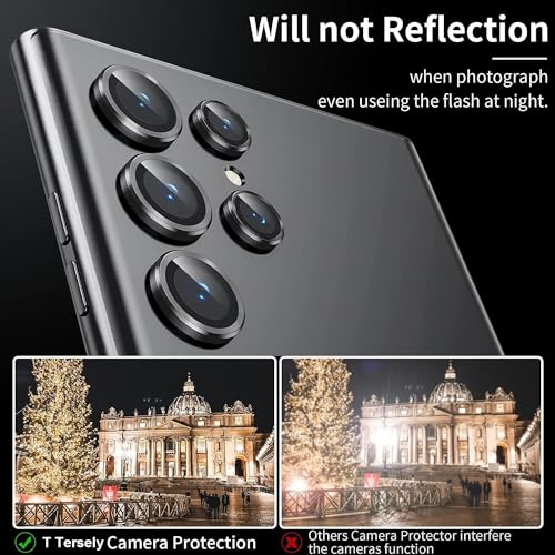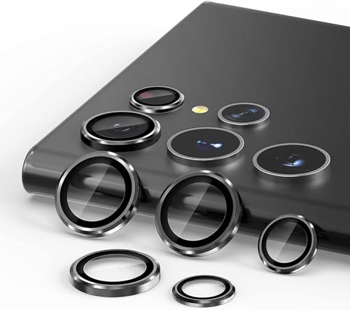 T Tersely - واقي عدسة كاميرا من الزجاج المقوى بتصميم شفاف مضاد للكسر بدرجة صلابة 9 لموبايل سامسونج جالاكسي S24 الترا 2024 تي تيرسيلي أسود