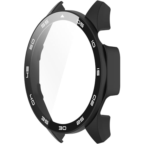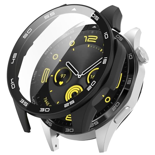 T Tersely - تي تيرسيلي جراب وشاشة حماية لساعة هواوي GT4 مقاس 46 ملم مع مقياس، حماية شاملة مضادة للخدش والصدمات من البولي كربونات الصلبة، غطاء كامل من الزجاج المقسى متوافق مع ساعة هواوي GT4 (اسود)