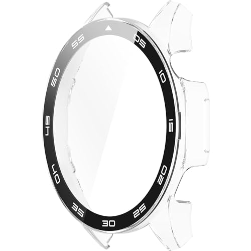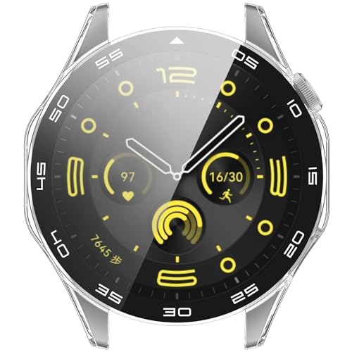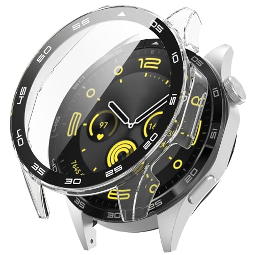 T Tersely - تي تيرسيلي جراب وشاشة حماية لساعة هواوي GT4 مقاس 46 ملم مع مقياس، حماية شاملة مضادة للخدش والصدمات من البولي كربونات الصلبة، غطاء كامل من الزجاج المقسى متوافق مع ساعة هواوي GT4 (شفاف)