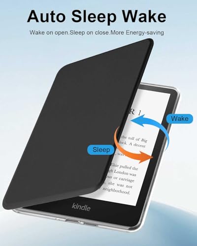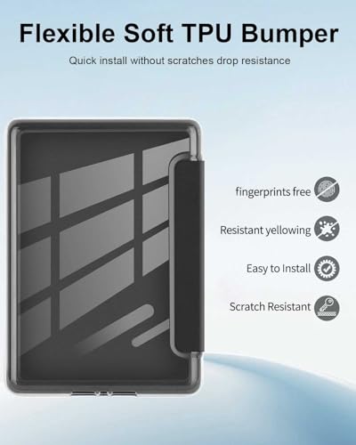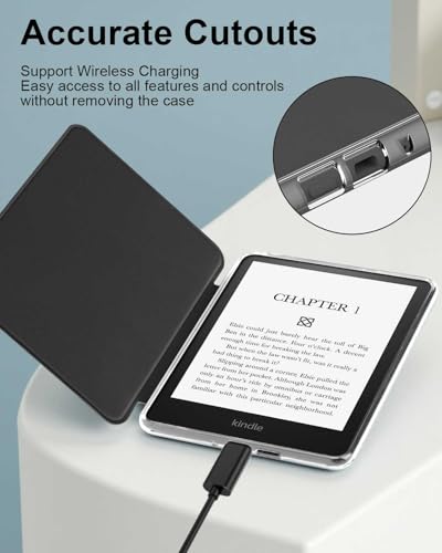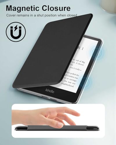 T Tersely - جراب حماية جلد بتصميم رفيع وشفاف مضاد للصدمات بخاصية النوم والتنشيط التلقائي لجهاز القراءة Kindle بيبر وايت الجيل 12 إصدار 2024 مقاس 7 بوصة وKindle كولورسوفت سيجنتشر من تي تيرسيلي (أسود)