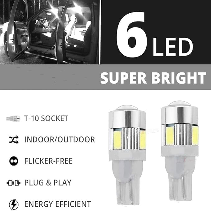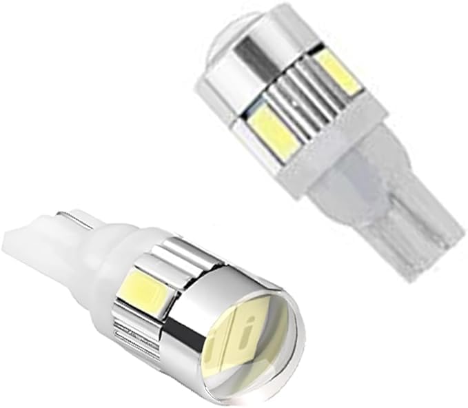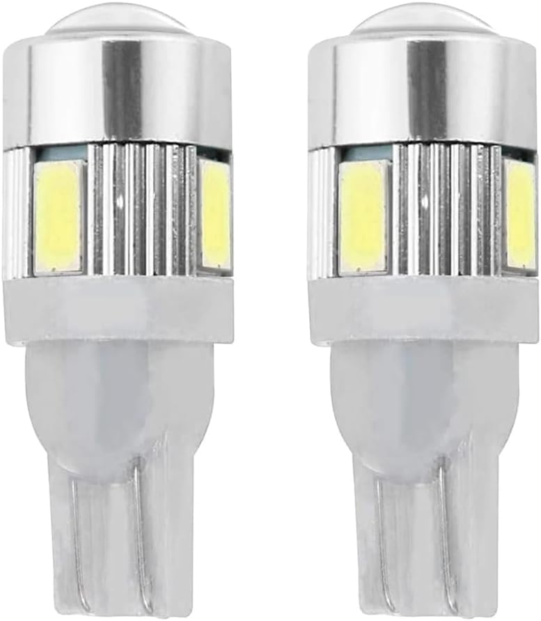 Generic - لمبات ليد عدسة لون ابيض ساطع LED T10 ، فائقة السطوع 12 فولت W5W، لمبة LED بيضاء اس ام دي، مصباح ليد عدسة عالمي مناسبة للسيارات والدراجات النارية والشاحنات - ابيض 6 ليد -عدد 2 قطعة - SA CAR