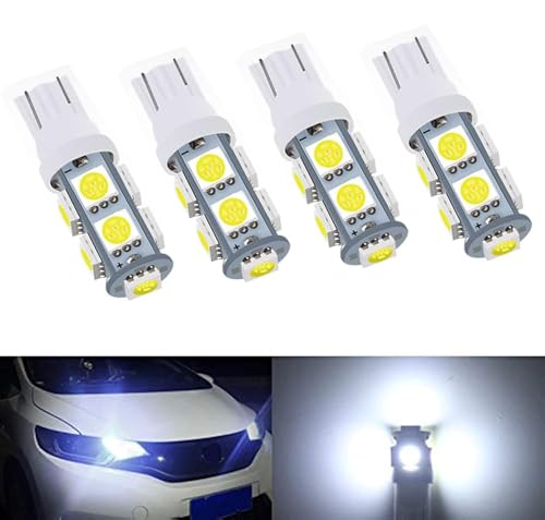 Generic - لمبات LED T10 ، تناسب 194 168 175 2825 W5W، فائقة السطوع 12 فولت، لمبة LED بيضاء 9-5050 اس ام دي، لوحة ترخيص والتابلوة والسقف والابواب للسيارة - تيار مستمر 12 فولت - أبيض 9 ليد - 4 قطع - من كابر تريد