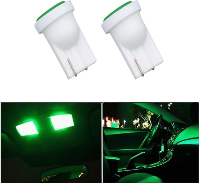 Generic - مصابيح LED T10 قاعدة اسفينية لمصباح وقوف السيارة/ مؤشر جانبي/ مصابيح لوحة ارقام ( COB T10 اضاءة اخضر، 2 قطعة ) - SA CAR