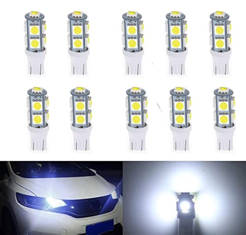 Generic - مصباح ليد اسفيني T10 W5W 5W5 12 فولت 5050 اس ام دي ابيض دافئ فائق السطوع للسيارة من الداخل لصندوق السيارة من T10-9SMD - تيار مستمر 12 فولت - أبيض 9 ليد - 10 قطع - من كابر تريد
