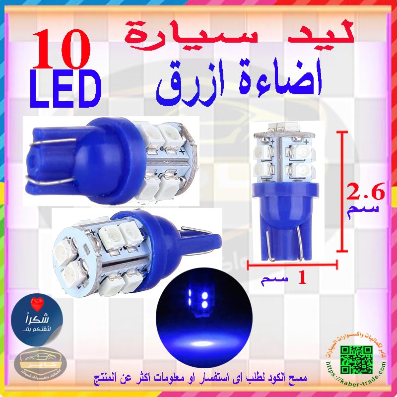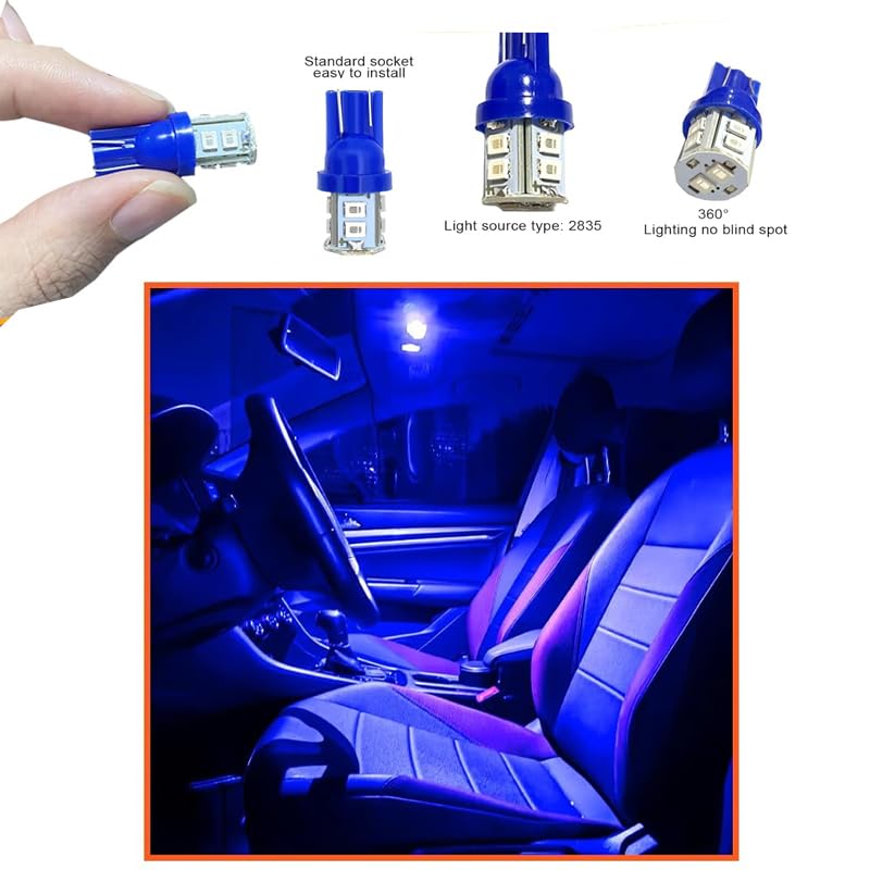 Generic - طقم مصابيح إضاءة LED داخلية ساطعة بقاعدة إسفينية نوع T10 ، لمبات إشارة جانبية للسيارات، لمبات بديلة لإضاءة لوحة ترخيص السيارة (اضاءة ازرق ، 10 ليد ، 2 قطعة ) - من كابر تريد