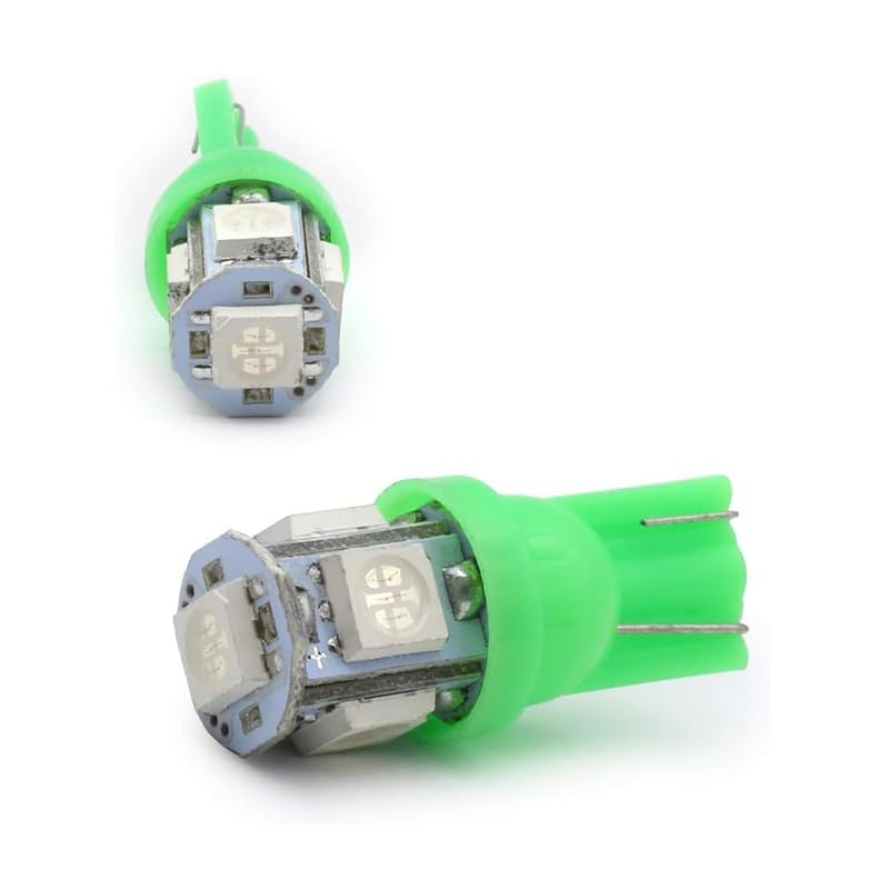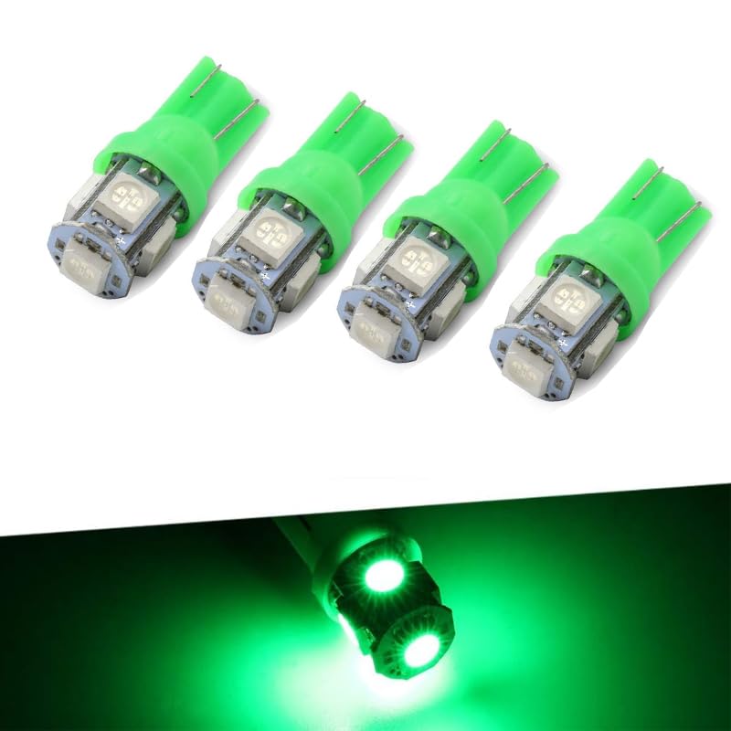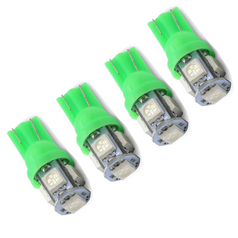 Generic - طقم مصابيح إضاءة LED داخلية ساطعة بقاعدة إسفينية نوع T10 ، لمبات إشارة جانبية للسيارات، لمبات بديلة لإضاءة لوحة ترخيص السيارة (اضاءة اخضر ، 5 ليد ، 4 قطع ) - من كابر تريد