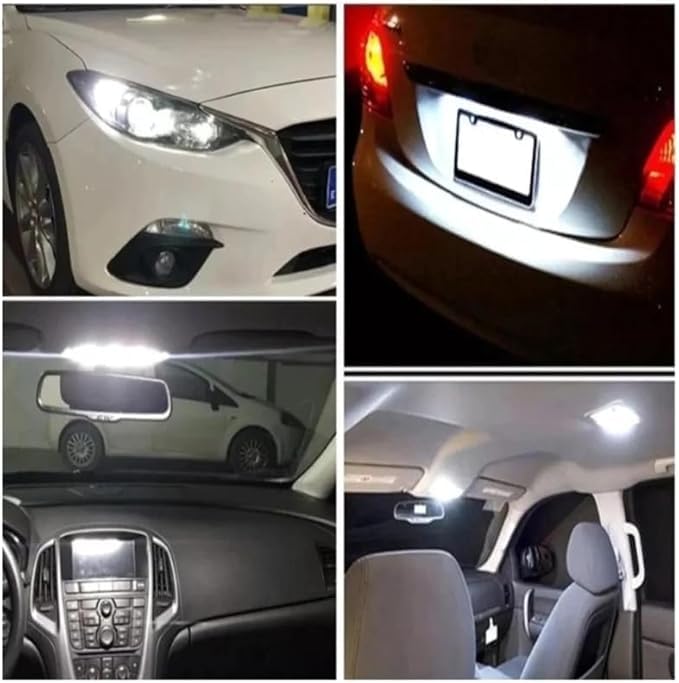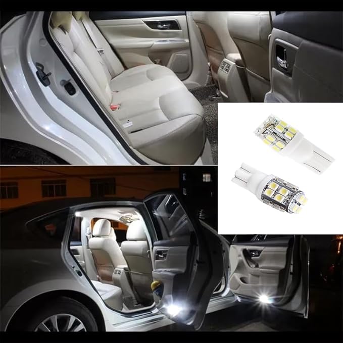 - ✅طقم مصابيح إضاءة LED داخلية ساطعة بقاعدة إسفينية نوع T10 ، لمبات إشارة جانبية للسيارات، لمبات بديلة لإضاءة لوحة ترخيص السيارة ، إضاءة مشرقة وفعالة: توفر لك إضاءة قوية وساطعة لتحسين الرؤية .