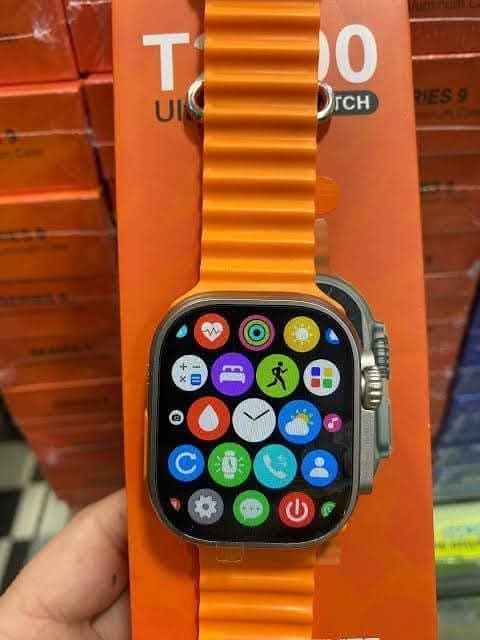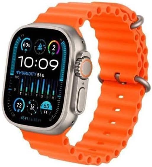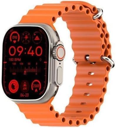 Generic - ساعة ذكية T2000 ultra 2 متوافقة مع أبل ووتش، سوار سيليكون برتقالي، شاشة رقمية، مقاومة للماء، شحن لاسلكي، مع كابل شحن