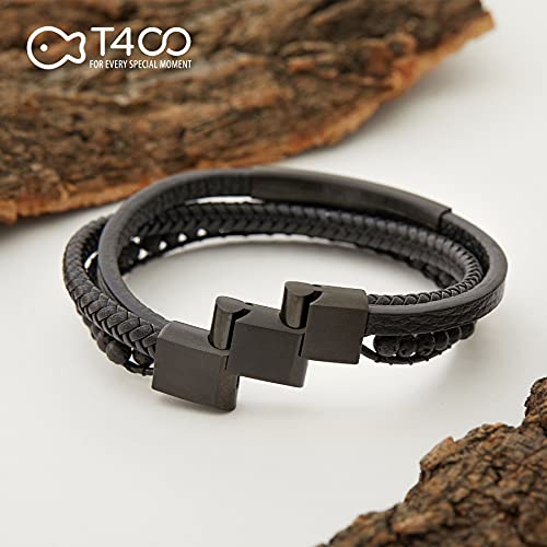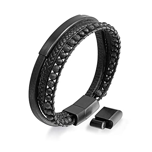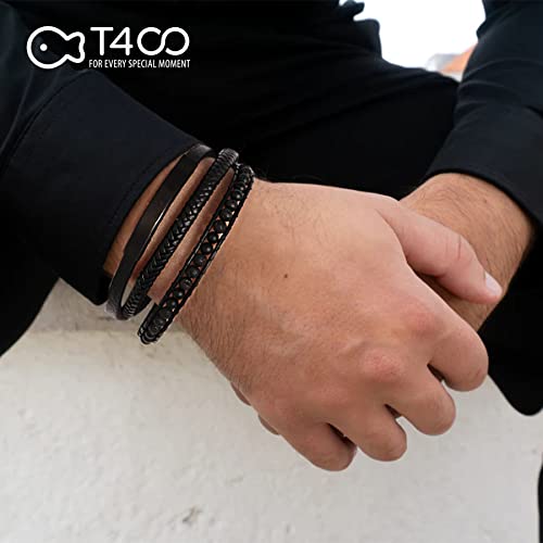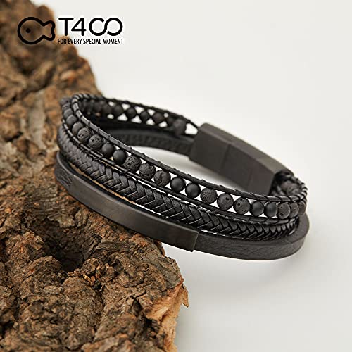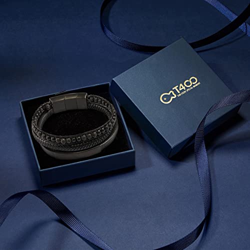 T400 - سوار تي 400 للرجال من الجلد مع خرز اسود ازرق بني معصم متعدد الطبقات مشبك مغناطيسي الستانلس ستيل فكرة هدية جلد بدون أحجار كريمة