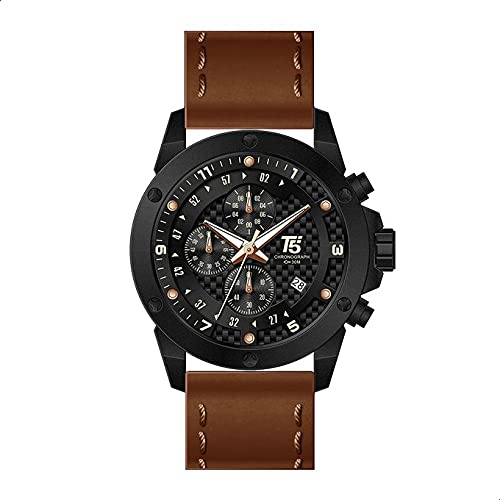 T5 - ساعة جلد دائرية انالوج بعقارب للرجال من تي 5 H3516G-C، اسود