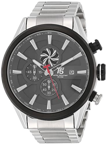 T5 - ساعة ستانلس ستيل دائرية انالوج بعقارب للرجال من تي 5 H3627G-B، فضي