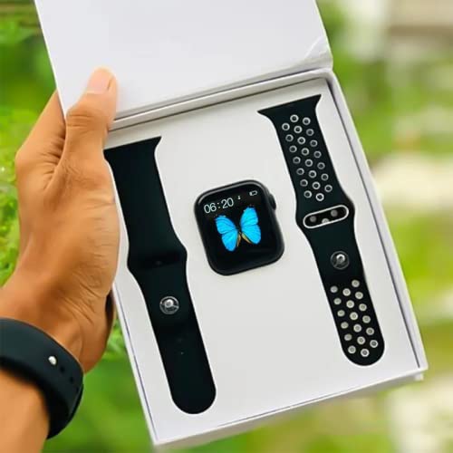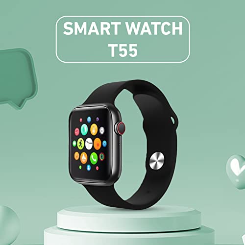 Generic - ساعة سمارت T55 بشاشة كاملة مع سوار من السيليكون وتاج متحرك، لاجراء المكالمات والرد عليها وتدريبات اللياقة والصحة، يمكن غلقها برقم سري، تدعم اللغة العربية، لنظامي تشغيل اندرويد وIOS - بلون اسود