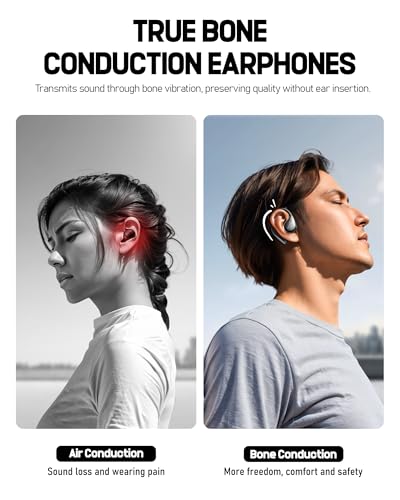 - 【تجربة صوت واضحة】 تتميز سماعات الأذن T60 ذات التوصيل العظمي بمكبر صوت مذبذب 13 ملم، وتوفر صوتًا واضحًا للغاية من خلال التوصيل العظمي، مما يوفر صوتًا متوازنًا عبر جميع الترددات، بما في ذلك صوت جهوري عميق ورنين لتجربة استماع محسنة.