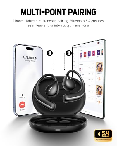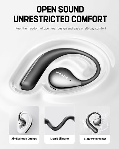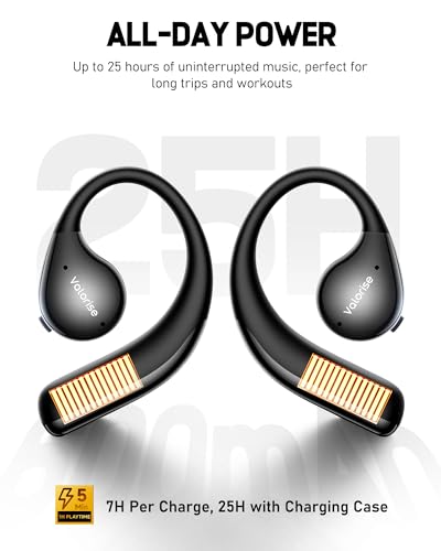 Valorise - سماعات أذن لاسلكية T60 او دبليو اس بخاصية التوصيل العظمي، سماعات مفتوحة مع خطافات للأذن، بلوتوث 5.4، صوت جهوري عميق، خفيفة الوزن ومتينة، وقت تشغيل 25 ساعة، مقاومة للماء IPX6 للأماكن الخارجية والجيم