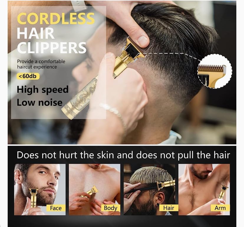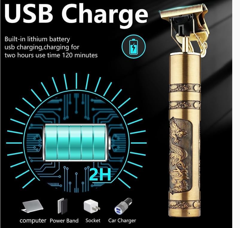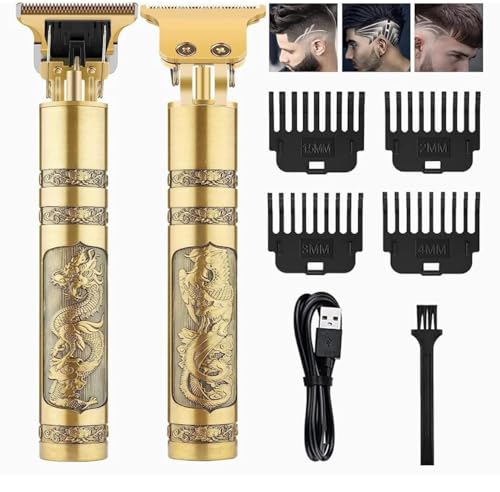 Generic - ماكينة حلاقة شعر لاسلكية T99 للرجال، ماكينة حلاقة كهربائية احترافية على شكل تنين ذهبي قابلة لاعادة الشحن بمنفذ USB، ماكينة تشذيب شعر اللحية والشارب مع 4 امشاط توجيه