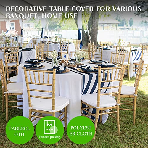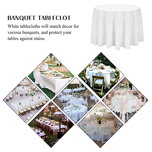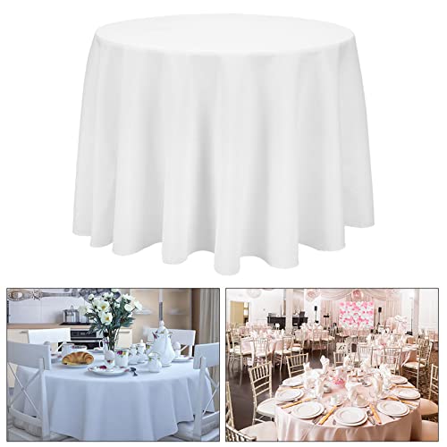Susire - مفرش طاولة لتزيين الحفلات: مفارش مستديرة بيضاء لحفلات الزفاف 229 × سم من قماش البوليستر غير المرن غطاء واقي الطعام في الهواء الطلق وحفلات استقبال المولود الجديد سوسير