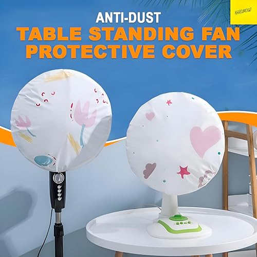Generic - غطاء مروحة طاولة مصنوع من الألياف الدقيقة قابل للغسل لحماية الأصابع مع ميزات أمان مضادة للغبار لمراوح الأرضية المنزلية، تصميم مطبوع متين وسهل التنظيف (2)، 15.0 واط