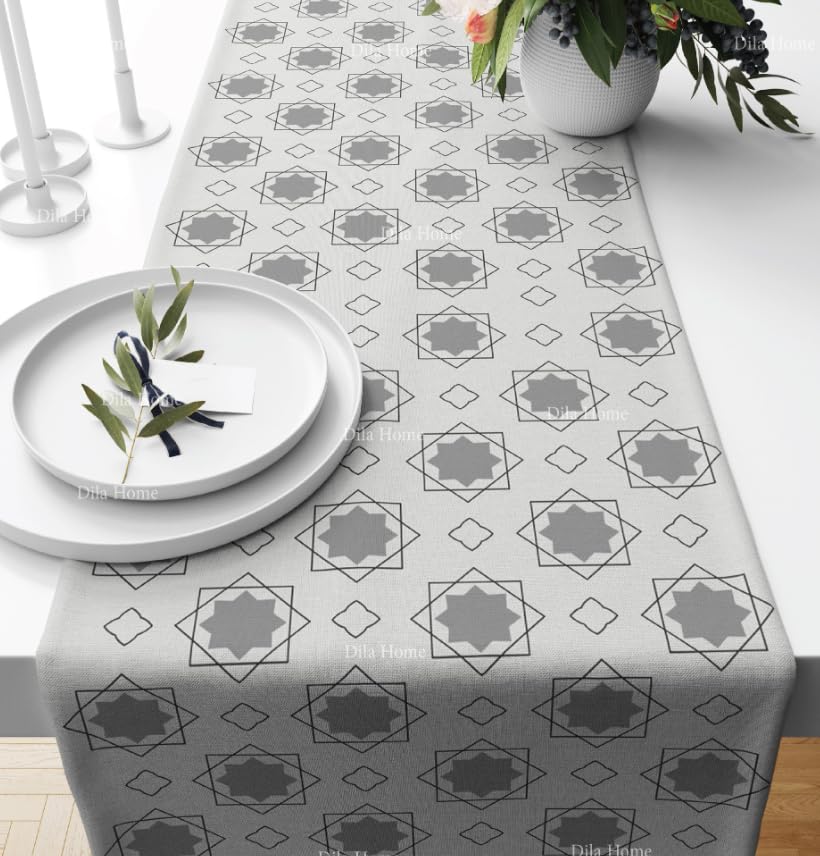 Generic - مفرش رمضان رمادي 140 سم × 40 سم على خلفية ملونة مطبوعة رقمية، مفرش رمضان جراي سفره رانر تاربيزه ديكور للمنزل