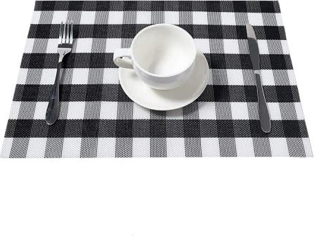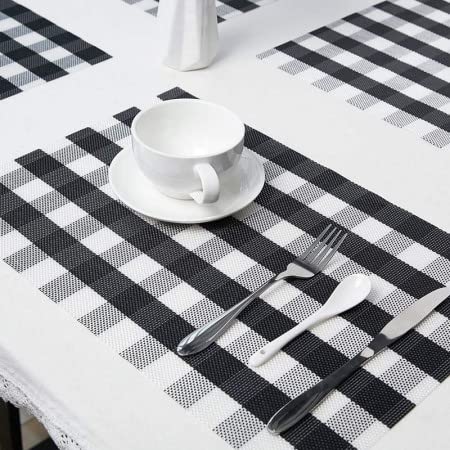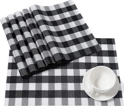 Generic - طقم مفارش طاولة، 6 قطع مفارش غير قابلة للانزلاق، سهلة الغسل، مفارش لطاولة المطبخ مقاومة للحرارة رائعة لطاولة الطعام (اسود وابيض)