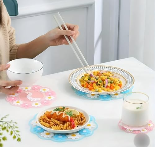 Generic - واقي طاولة - قاعدة اكواب كبيرة انيقة من السيليكون مقاومة للحرارة مثالية للمقالي الساخنة والاطباق، سهلة الاستخدام والغسل، تضيف سحرًا زخرفيًا للمطابخ الحديثة 18 سم