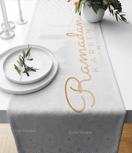 Generic - مفرش طاولة رمضان بسيط 250 سم × 140 سم على خلفية ملونة بطباعة رقمية، مفرش سفره تاربيزه ديكور للمنزل مفرض رمضان
