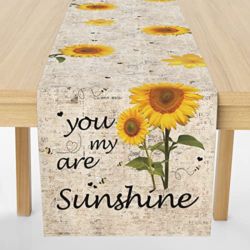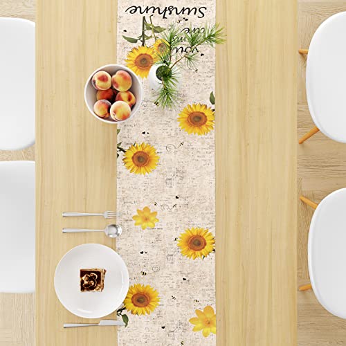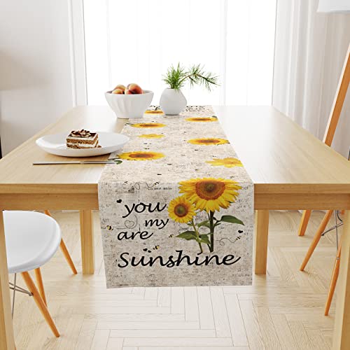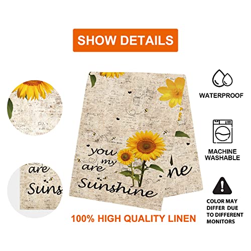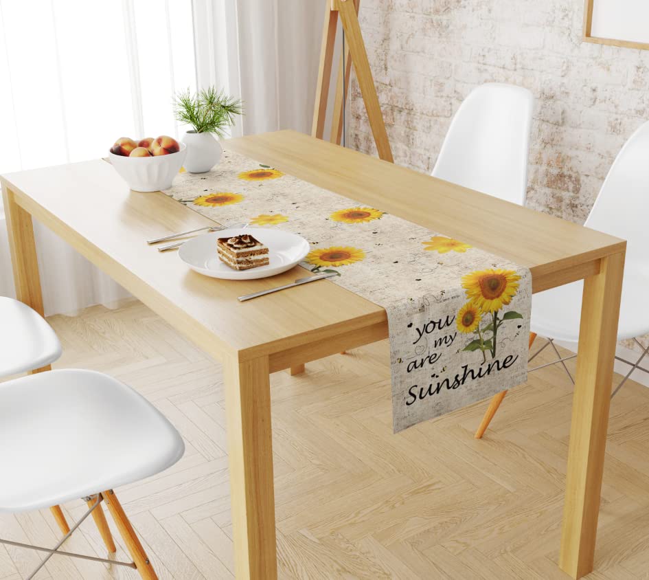 YENISEI - مفرش طاولة بطول 13 × 36 انش مع طبقة قطنية مقاومة للماء، مفرش خيش بتصميم نحلة ذهبية وعباد الشمس للخريف والخريف والمطبخ ومدخل الطعام وديكور طاولة الزفاف، ديكور حفلات المنزل والعطلات