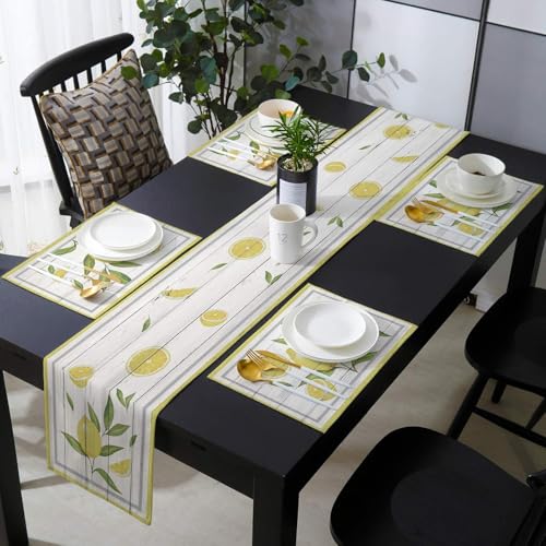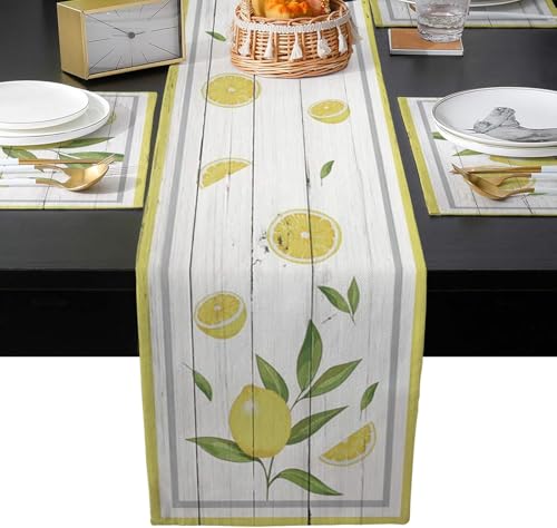 Generic - مفرش طاولة لديكور المطبخ، ليمون واوراق الشجر على الخشب، مفرش طاولة من الخيش لديكور بيت المزرعة لحفلات الزفاف والعطلات، ديكور طاولة 16 × 72 انش مع مفارش مجموعة من 4 قطع