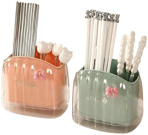 Generic - منظم تخزين للطاولة متعدد الاستخدامات للمطبخ مناسب للأواني والسكاكين والشوكة وللحفاظ على أساسيات تناول الطعام بشكل أنيق، لون وردي و جرين مينت، قطعتان