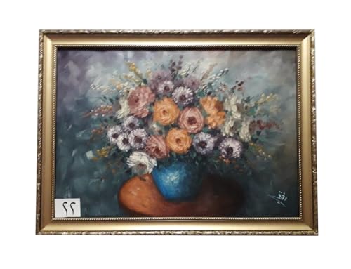 Generic - تابلوه فازة زرقاء زيت بارز رسم باليد وبالسكين من روائع الفن فريم خشب طبيعى ذهبي بديكور مقاس 57 × 77 سم