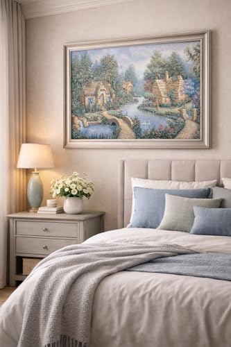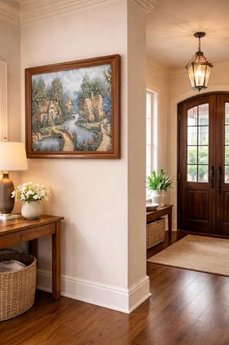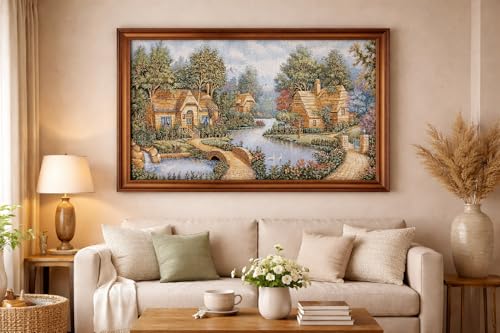 - تابلوه منظر طبيعى البجع جوبلان خامات عالية الجودة فريم خشب طبيعى بني مقاس 57 × 77 سم