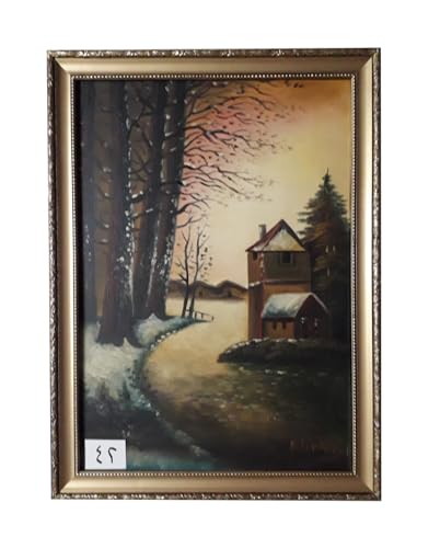 Generic - تابلوه منظر طبيعى الجليد زيت باز رسم باليد من روائع الفن فريم خشب ذهبي بديكور مقاس 57 × 77 سم