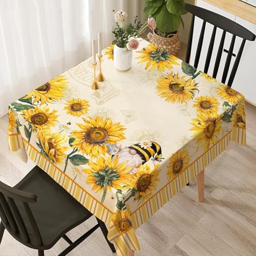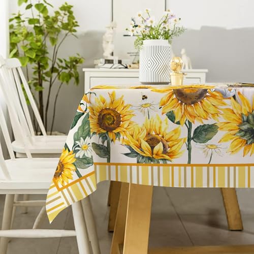 Generic - مفرش طاولة بتصميم زهرة دوار الشمس، مفرش طاولة دائري بنمط زهور المزرعة قابل للغسل بلون أصفر، مفرش مربع من البوليستر للحفلات في الهواء الطلق وغرفة الطعام والمطبخ وفصول الصيف والخريف، مقاس1.37 × 1.37 م