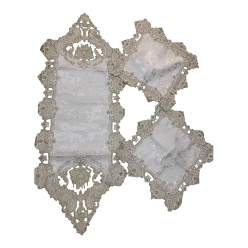 Generic - مفرش المائدة طقم ثلاثي جاكار في جوبير رانر صغير و2طقطوقه