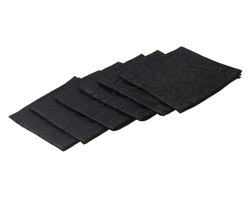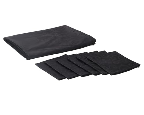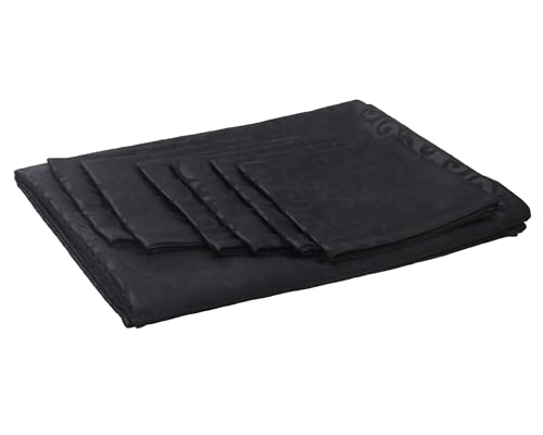 Gazal - مفرش طاولة مع 6 مناديل قماش، لون أسود، مقاس 1.8 متر×2.9 متر