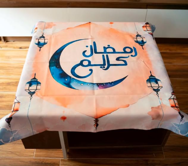 • تصميم أنيق: يتميز بنمط هلال جميل وفانوس بدرجات اللون الخوخي والأزرق، مثالي لإضافة لمسة احتفالية وثقافية إلى مساحة الطعام الخاصة بك