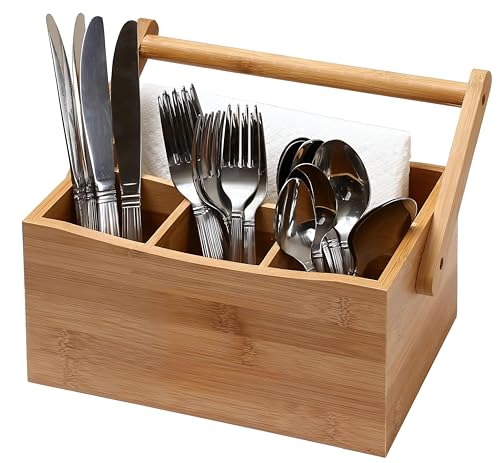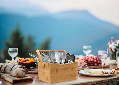 - مصمم لسهولة الحمل والاستخدام في الهواء الطلق، منظم الخيزران هذا مثالي للنزهات والحفلات والبوفيهات وحفلات الزفاف وغيرها من المناسبات بعيدًا عن المطبخ، مما يتيح لك الحفاظ على أدوات المائدة وأدوات المطبخ منظمة بأناقة أثناء التواصل الاجتماعي أو خدمة الضيوف.